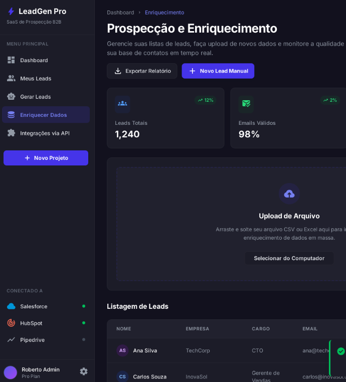 Plataforma completa de gestão de leads e clientes com automações inteligentes e dashboards em tempo real.